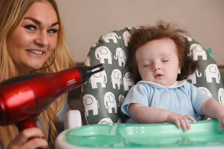 La sua chioma viene lavata tutti i giorni e asciugata per addomesticarla visto che da quando è nato praticamente non ha mai perso un capello.