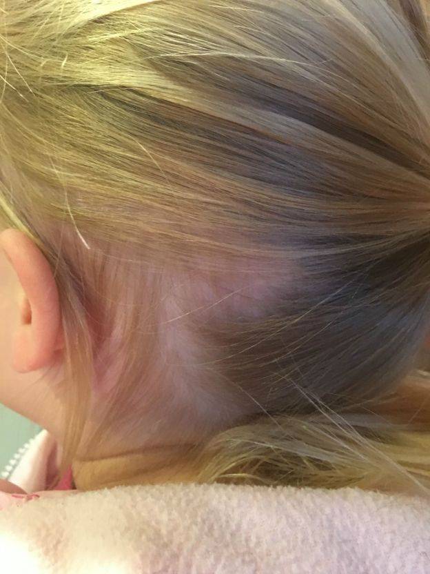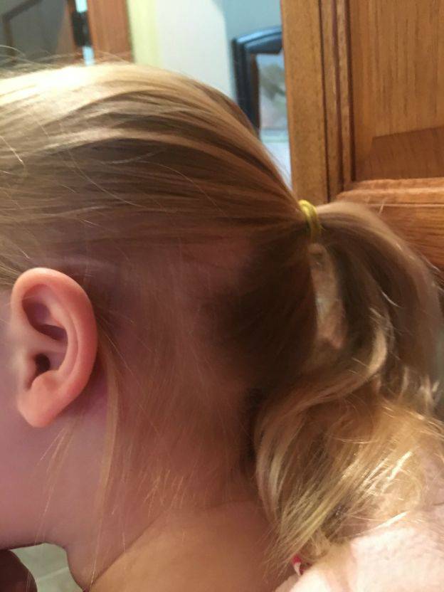 Il mattino seguente mentre cercavo di acconciare quello che sembrava un groviglio dei suoi bei capelli biondi, è stato rilasciato un grumo. Ero sconvolta nel vedere che l’intera parte posteriore dei suoi capelli era finita tra le mie mani.