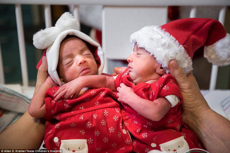 Ciò ha permesso ai genitori di vestire per la prima volta i loro figlio come piccoli Babbi Natale, cappellino rosso compreso.