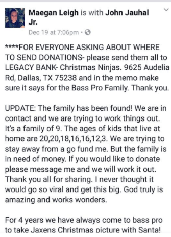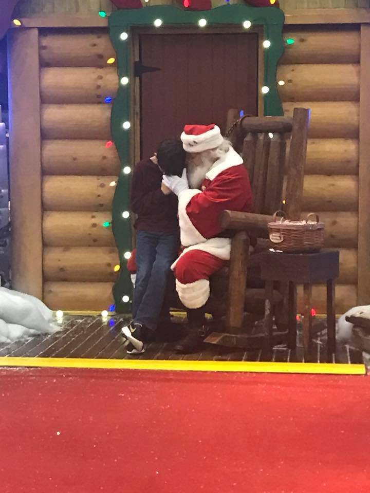 “Per 4 anni siamo sempre venuti da Bass Pro affinché Jaxen facesse una foto con Babbo Natale. Questa sera so che eravamo nel posto giusto quando la famiglia davanti a noi è andata a trovare Babbo Natale.