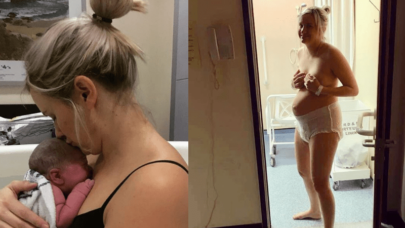 Una di queste è per esempio Sarah, una mamma blogger e e scrittice che sul profilo Instagram del suo blog Theunmumsymum, ha postato una foto meravigliosa di lei e del suo bambino Wilf nella vasca della nascita, seguita da una scatto di lei con un “pannolino per adulti” (cosa che tutte indossano dopo aver partorito per via delle lochiazioni).