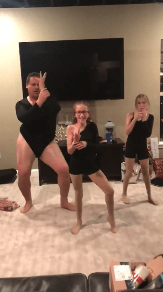 Steve Haddad è un papà che non si tira certamente indietro davati a una sfida, anche se questa prevede un balletto pop con body attillato insieme alle figlie.
