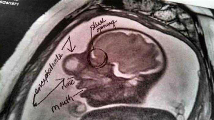 Analisi più approfondite hanno svelato che la diagnosi era più grave: si trattava di encefalocele.