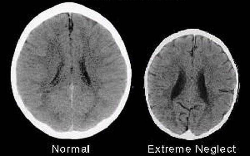 La grande differenza nelle dimensioni e nello sviluppo di questi due cervelli, infatti, non dipende da una malattia o da un incidente, ma dal modo in cui i due bambini sono stati trattati dalla madre.