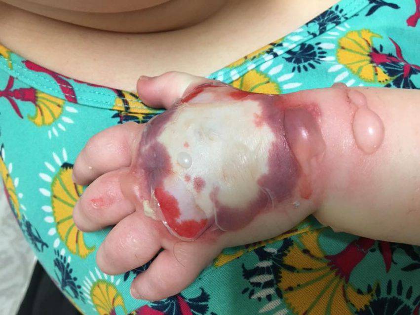 Nel frattempo la mano della piccina si era gonfiata e coperta di vesciche.
