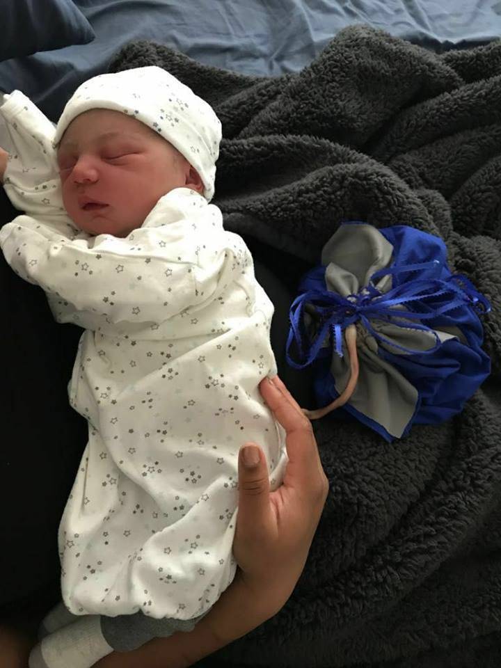 Osservando la foto del figlio di Nick e Vanessa, la prima cosa che colpisce è il sacco per la placenta.