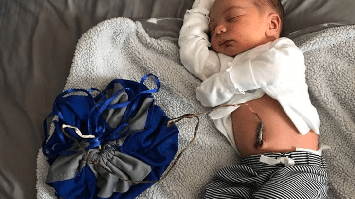 Quindi il piccolo Ashton dopo il parto è rimasto attaccato al suo cordone ombelicale.