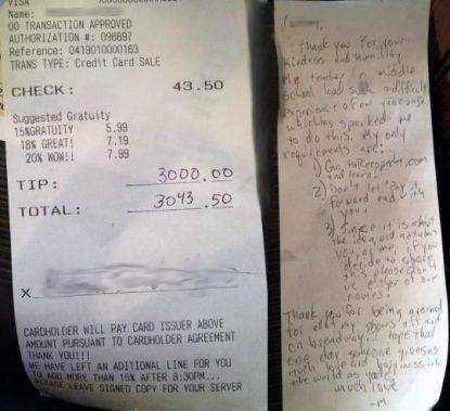 L’e-mail proveniva da una cameriera che lavora a Times Square e ha detto a Specht di aver ricevuto tremila dollari di mancia col pay-it-forward.