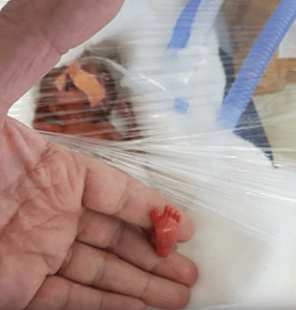 Quando Manushi è venuta al mondo pesava solo 400 grammi ed era lunga 21 centimetri. Fa un effetto incredibile vedere la foto del suo piedino che risulta essere “grande” come la punta del dito della mano del papà.