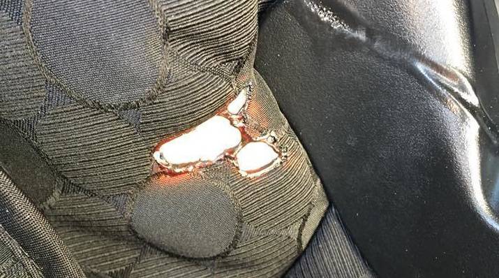La causa è stato lo specchietto che ha riflettuto il sole direttamente sul seggiolino, ha fatto sì che dopo un po’ questo iniziasse a fumare.