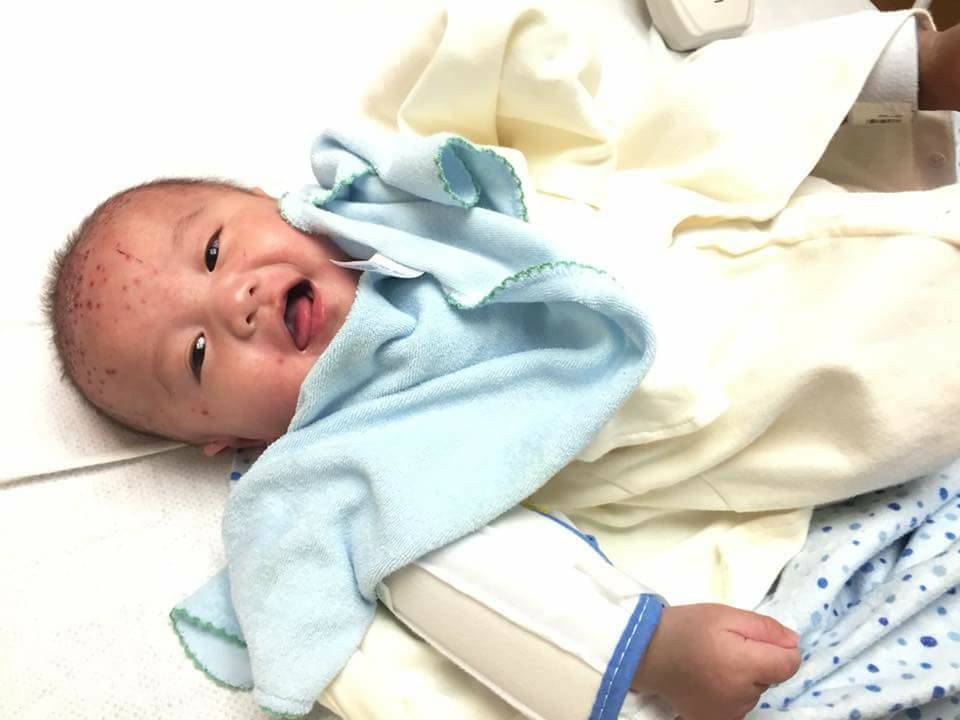 Il piccolo Troy aveva già delle brutte croste lattee e alcune fessure nella testa. La sua squadra medica sospetta che qualcuno con l’herpes labiale l’abbia baciato sulla testa trasmettendogli il virus.
