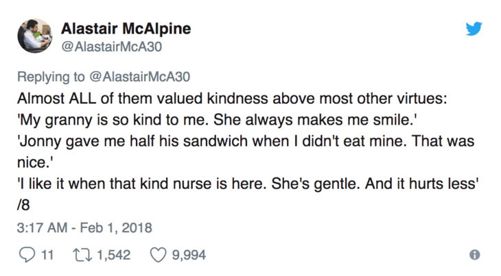 Il medico ha poi postato alcune di queste risposte su Twitter e dal momento in cui ha messo sui social le loro risposte davvero emozionanti, il tweet è stato condiviso oltre 60mila volte.Allo stesso modo, molti piccoli hanno notato valutandoli positivamente tutti quelli che hanno continuato a trattarli normalmente.