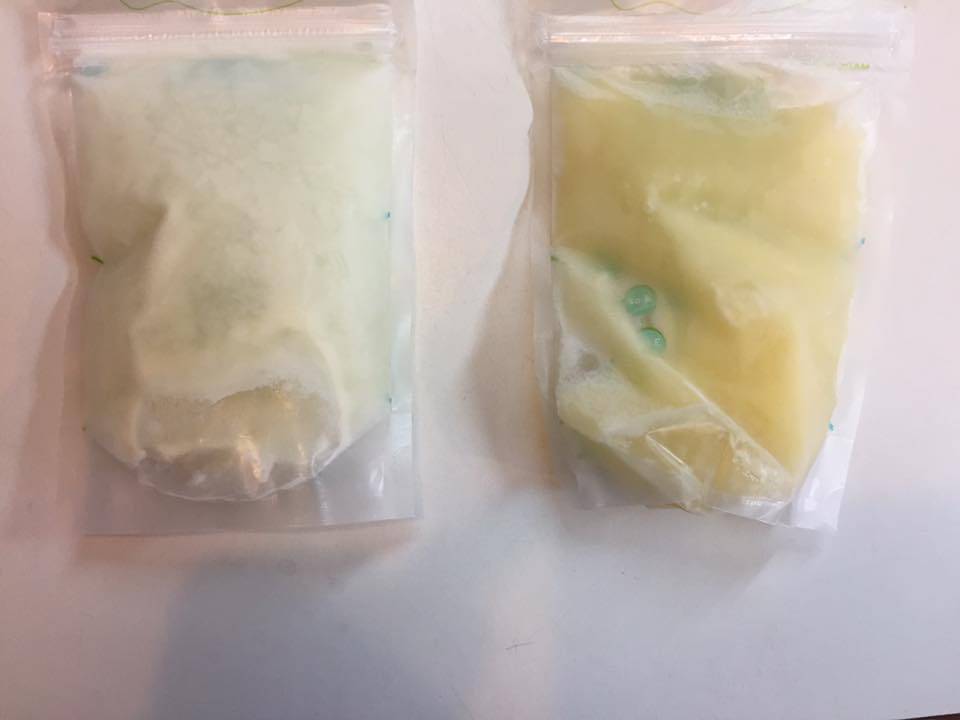 Il latte congelato sulla sinistra è di 2 settimane fa quando il tampone è tornato indietro positivo. Avete notato il cambiamento di colore?