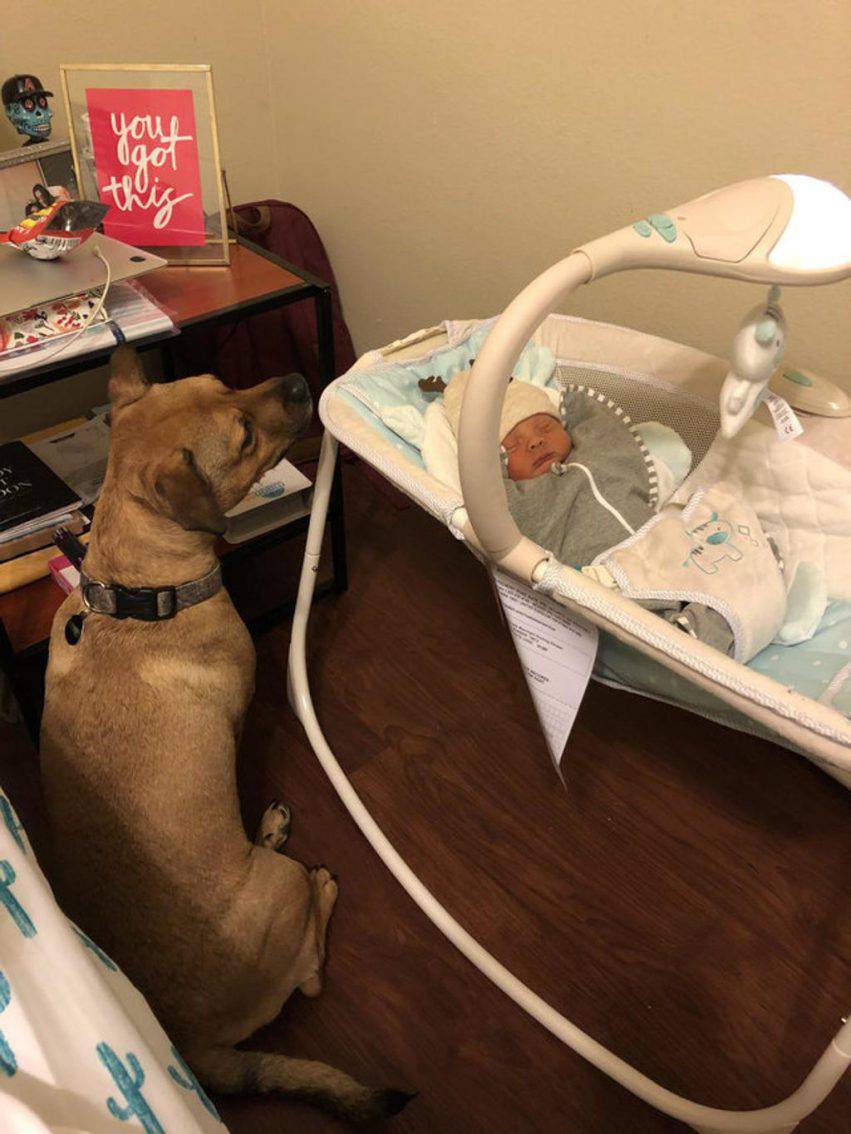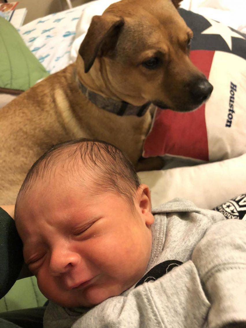 Lo scorso weekend i due hanno portato a casa il loro primo figlio Ethan e il cane ha da subito mostrato un grandissimo cambiamento.