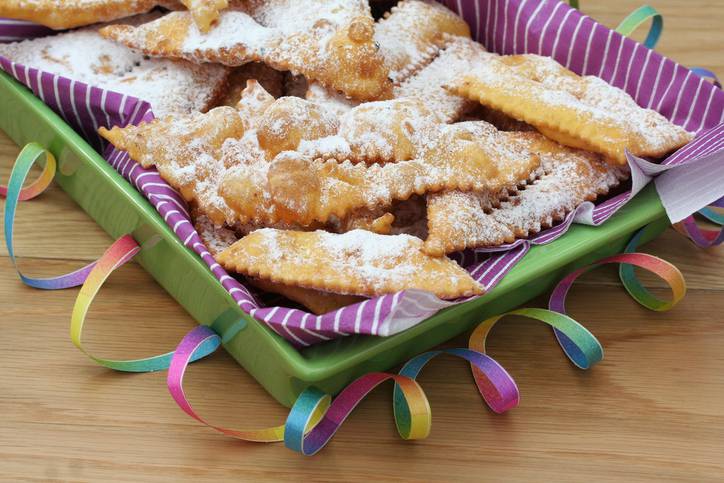 Questo periodo dell’anno ha i propri dolci, che a seconda della regione d’Italia in cui vengono prodotti, hanno diversi nomi: per esempio le chiacchiere – i tradizionali dolci fritti o al forno e spolverizzati di zucchero a velo – si chiamano bugie in Piemonte e cenci in Toscana. Ci sono poi delle derive più locali, come per esempio la variante Cròstoli o Grostoli, nel Polesine, mentre mentre nel Molise i Cunchielli. In provincia di Mantova e di Brescia, si chiamano invece Lattughe e in Sardegna Maraviglias, o Meraviglie.