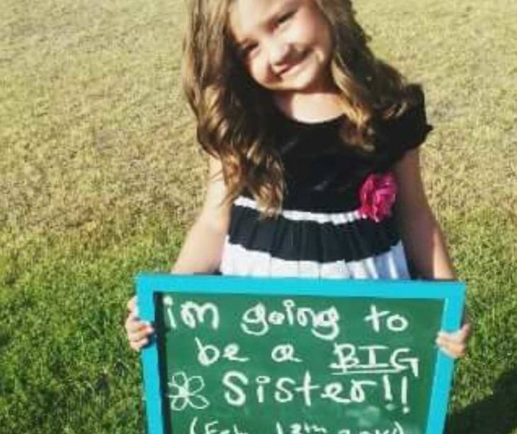 “Ho pettinato i suoi capelli, le ho messo un po’ di gloss sulle labbra, un vestito carino e poi siamo andati in bel prato dove ho scattato diverse foto con lei mentre teneva una lavagna con scritto: “sto per diventare una sorella maggiore! Abbiamo postato l’immagine su Facebook e l’abbiamo raccontato a tutta la famiglia, eravamo deliziati. “