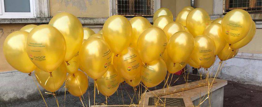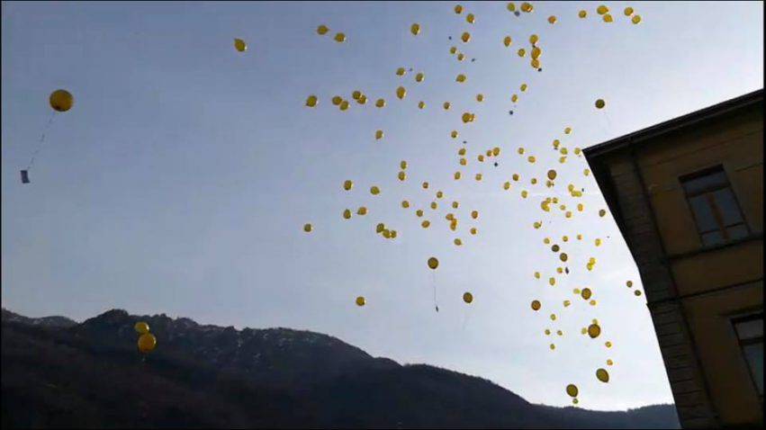 In 40 città sono stati lanciati 15 mila palloncini biodegradabili con il nastro d’oro, simbolo di oncologia pediatrica.