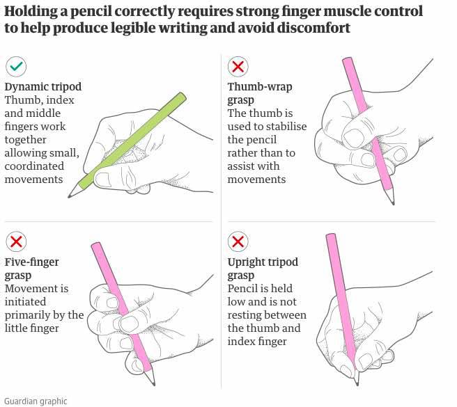 “I bambini non vengono a scuola con la forza nella mano e la destrezza che avevano 10 anni fa“ ha detto Sally Payne a theguardian.com, pediatra e terapista all’ Heart of England foundation NHS Trust.