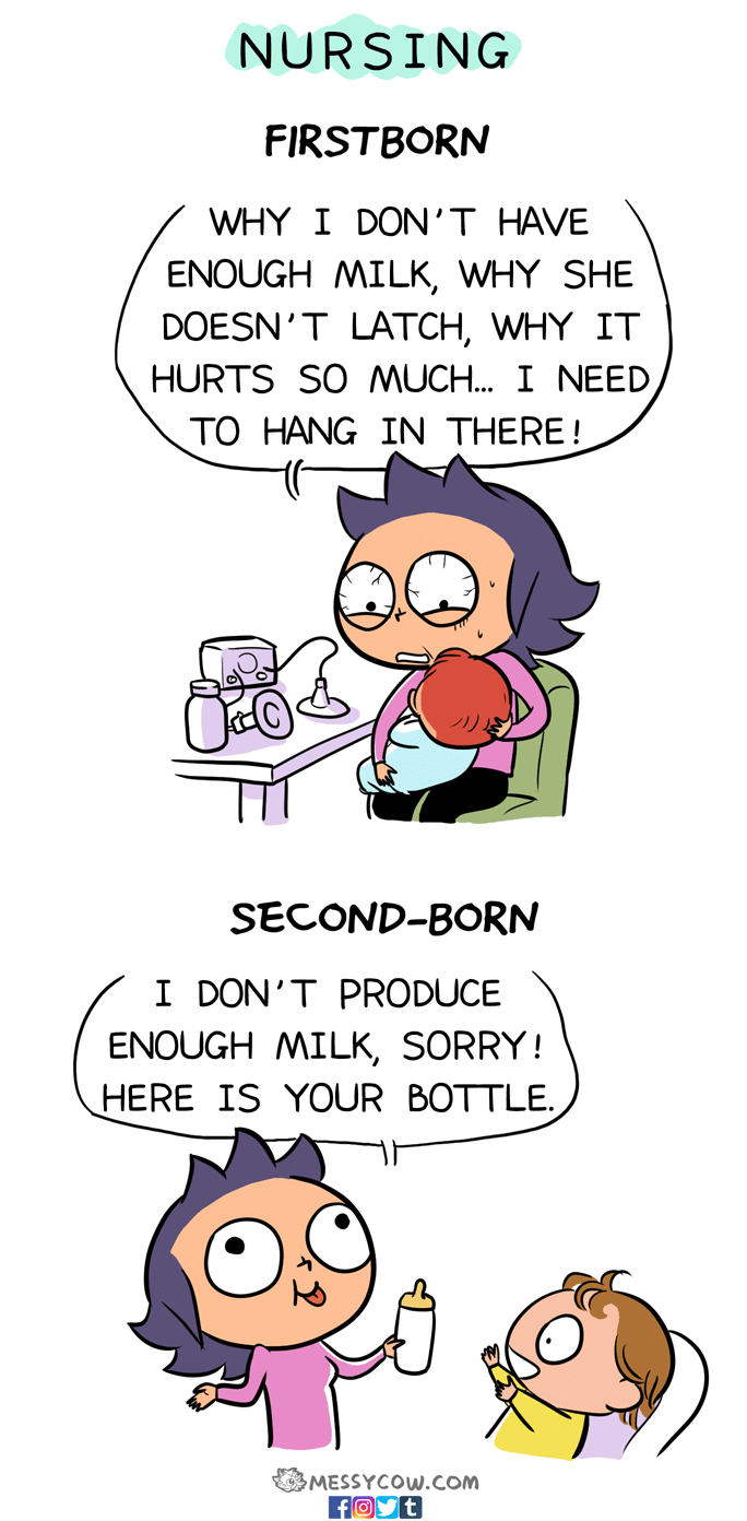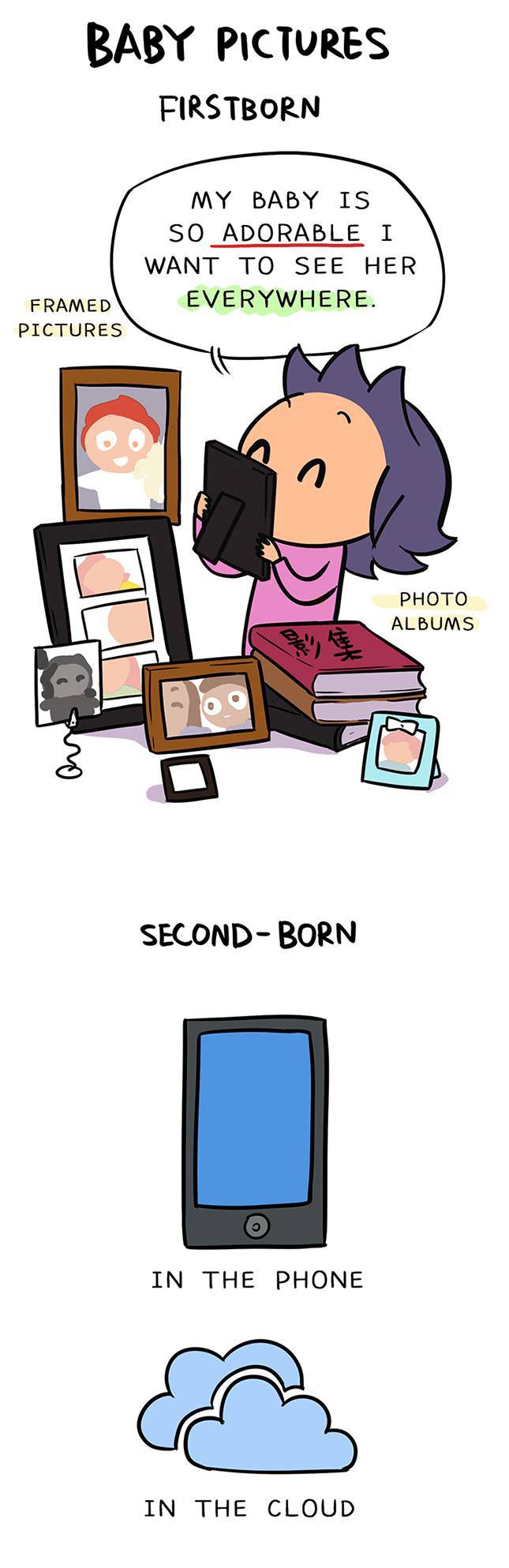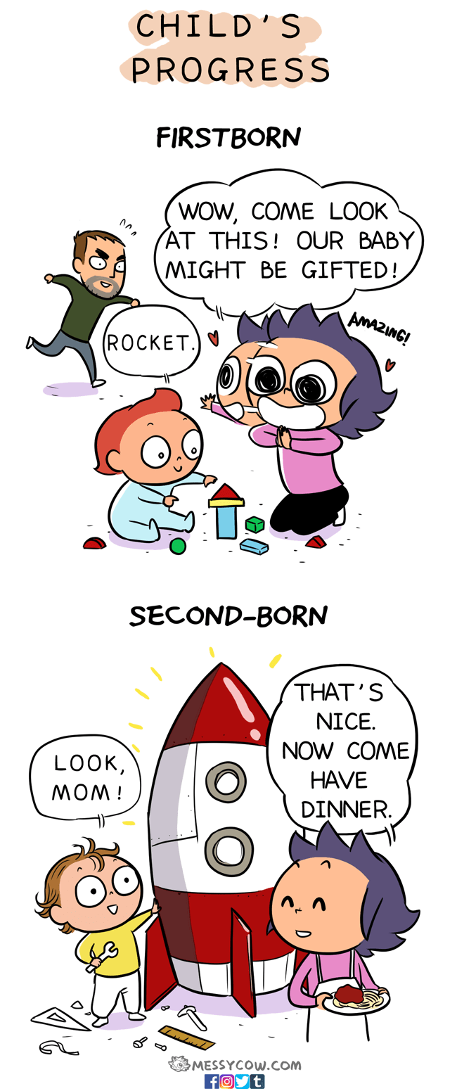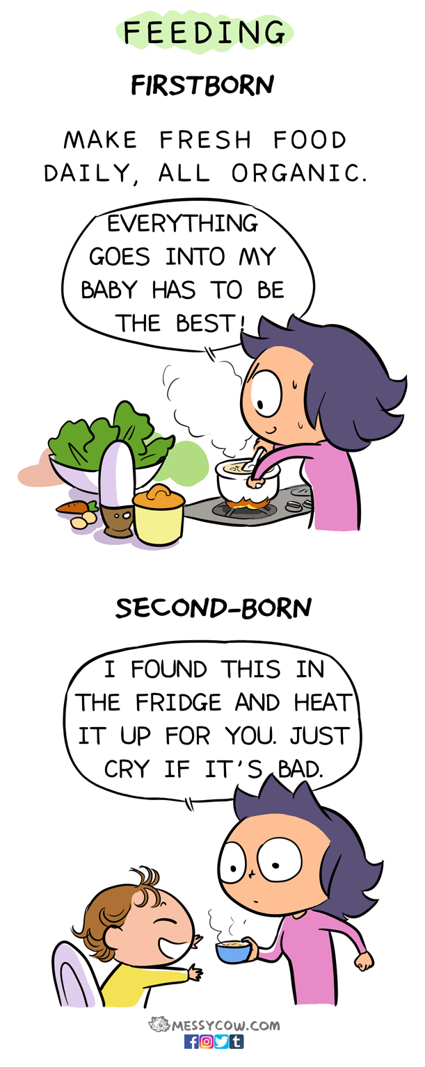 I genitori cambiano tantissimo dal primo al secondo figlio, a volte senza nemmeno accorgersene. Una mamma però l’ha intuito e ha deciso di riderci un po’ su.