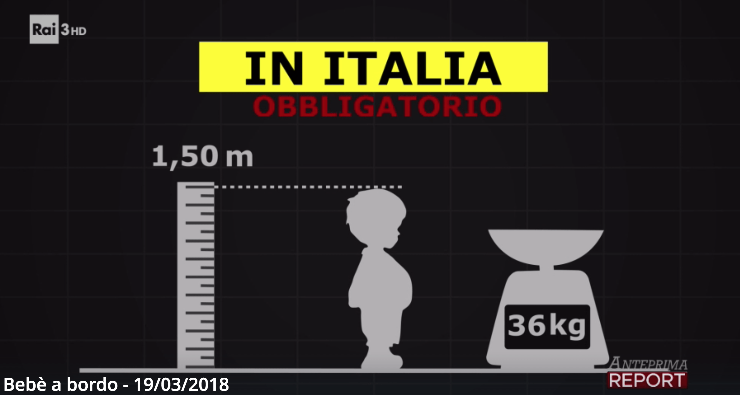 In Italia invece la questione è legata ai chili di peso: sotto il metro e cinquanta di altezza e fino ai 36 kg è obbligatorio.