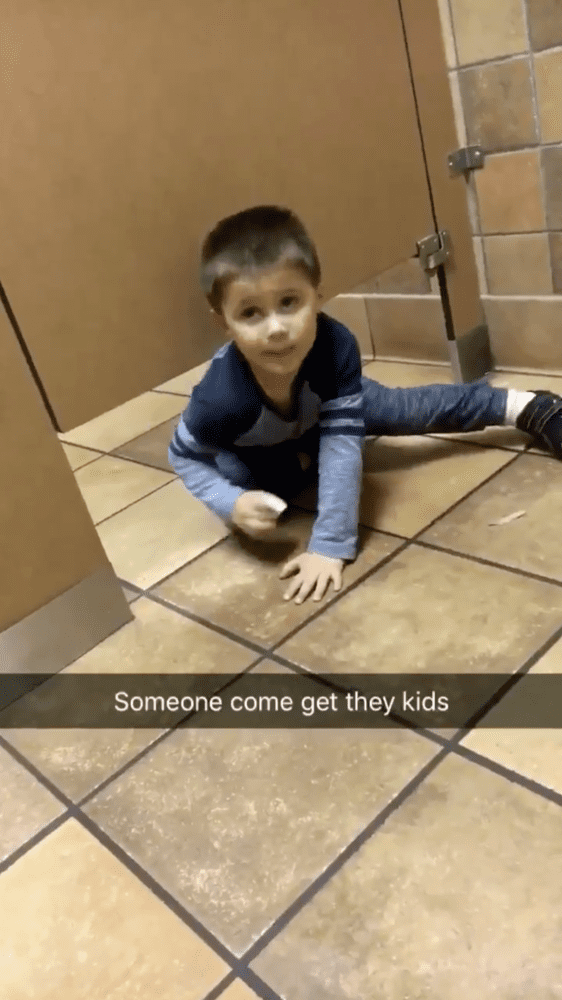 Un bambino è entrato nella toilette occupata da un adolescente, che ha filmato tutto.