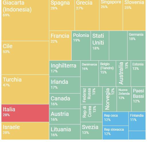 Da questo studio emerge che più di 1 italiano su 4 è low skilled (ha basse competenze), l’Italia risulta essere penultima in Europa e quart’ultima su scala mondiale tenendo in considerazione i Paesi dell’Ocse.