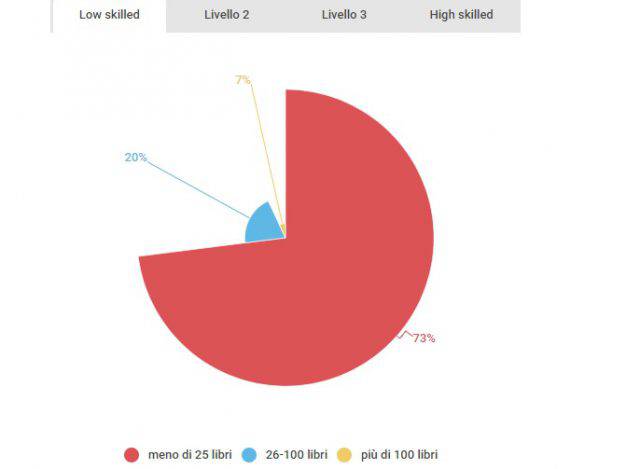 Gli analfabeti funzionali sono cresciuti all’interno di casa dove i libri erano pochi. Il 73% degli italiani con scarse competenze aveva meno di 25 libri in casa.