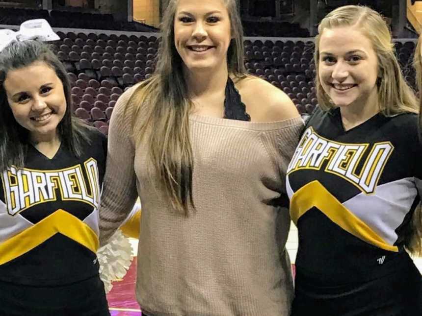 Durante la giornata questa ragazza ha anche allenato le cheerleader per la partita di basket della scuola superiore nel centro di Cleveland.