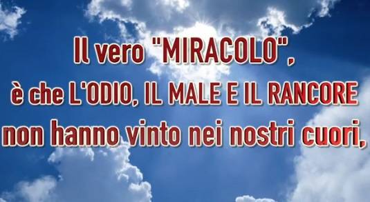 Il vero miracolo, ancora, è l’amore che ha circondato me e soprattutto le mie bambine. Il vero miracolo è che l’odio, il male e il rancore non hanno vinto nei nostri cuori, ma regna un senso di pace, di pietà e misericordia.