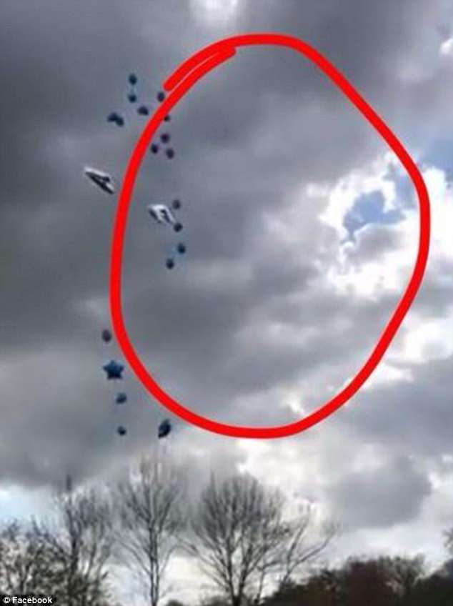 I palloncini azzurri e viola lanciati in cielo per Alfie