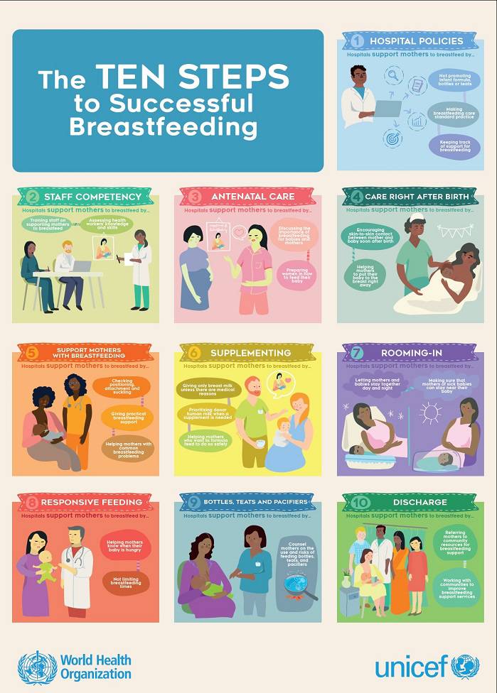 Ora le due organizzazioni sono di nuovo unite per promuovere un altro documento, una guida in 10 fasi che vuole aiutare le madri ad allattare i propri bambini in modo esclusivo per i primi mesi di vita. Il latte materno è sicuramente il miglior alimento per il neonato: è completo, è sempre pronto, li rende immuni da alcune malattie.