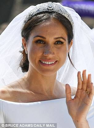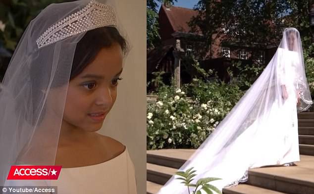 I capelli della bambina erano acconciati con uno chignon spettinato e una tiara uguale a quella che Meghan ha sfoggiato al Castello di Windsor.