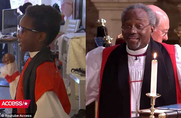 La ricostruzione del matrimonio di Harry e Meghan non è finita qui, è stato arruolato anche un bambino somigliante all’arcivescovo Michael Curry che ha tenuto un semone e una “copia” del violoncellista Sheku Kanneh-Mason.
