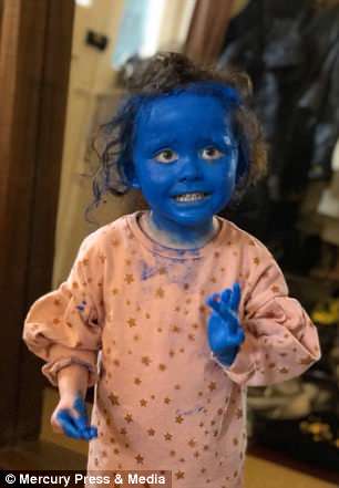 La piccina è rimasta in silenzio per 5 minuti, ma quando la mamma Juliette e il papà Steve l’hanno rivista, hanno notato che la bambina si era dipinta viso e mani di blu, tanto da somigliare a un puffo.