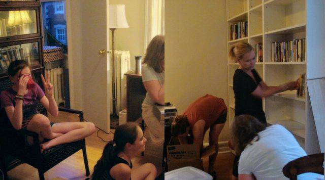 Hanno aperto le scatole, hanno sistemato i miei 1500 libri, hanno appeso le foto. Hanno organizzato il mio armadio e messo via i miei abiti. Nel frattempo qualcuno ha realizzato in cucina una postazione per fare i taco. Alcuni avevano portato la birra e per la fine della serata il mio appartamento era pronto.