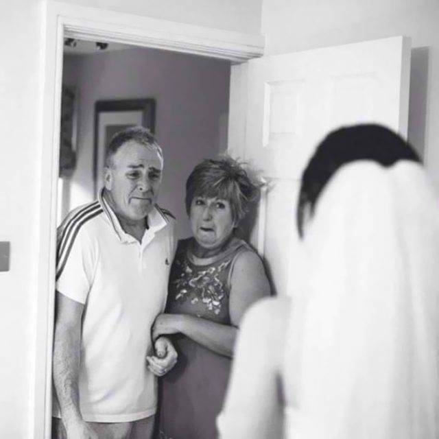 I papà si commuovono vedendo la figlia vestita da sposa.