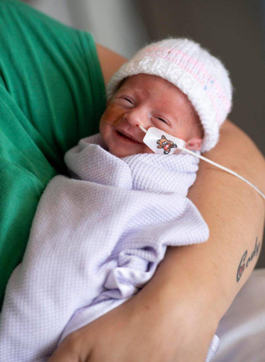 La piccola pesava 1,2 kg, mentre il fratello Preasley pesava un po’ di più.