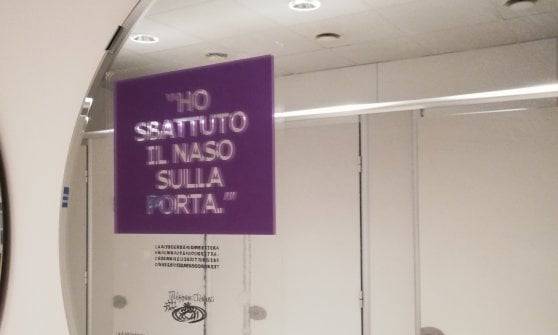 Nelle toilettes dei suoi negozi sono stati appesi dei cartelli con scritto: “Ho sbattuto il naso sulla porta”, “Quante volte al giorno ti dice: stai zitta cretina”, “sono caduta dalle scale”.