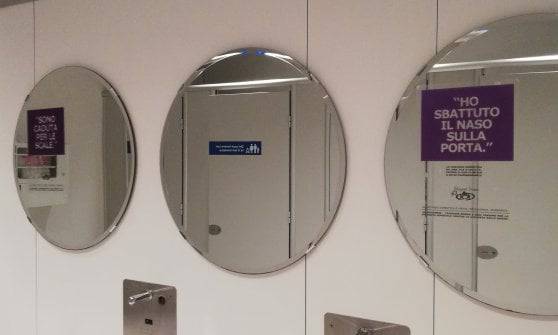 Si tratta di frasi brevi, ma di grande efficacia che le clienti possono trovare attaccate sugli specchi, nei bagni.