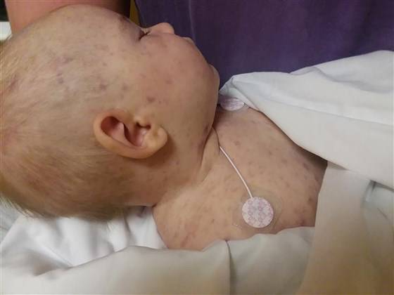 Quando gli hanno cambiato il pannolino si sono accorti che aveva dei puntini e hanno pensato che fosse uno sfogo da pannolino.