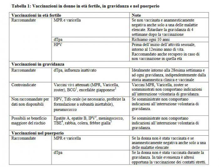 Poiché sia il vaccino MPR che quello della varicella sono controindicati in gravidanza, è necessario che, al momento dell’inizio della gravidanza, la donna sia già vaccinata regolarmente (con due dosi) da almeno un mese.