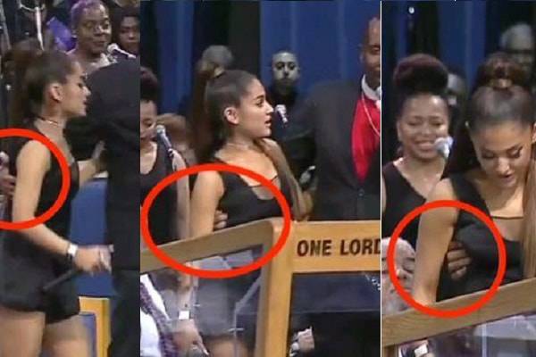 Dalle immagini si vede chiaramente che il pastore teneva Ariana Grande ben al di sopra della sua vita e al di sotto delle spalle, premendo con le dita sul seno laterale destro. È ben visibile anche l’imbarazzo della giovane cantante.