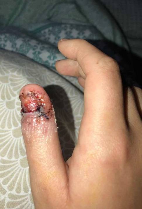 Nel corso dell’ultima operazione il pollice le è stato completamente rimosso.