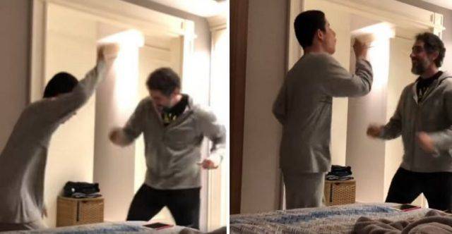 Il ragazzo è autistico. Padre e figlio in questo filmato condividono un momento di leggerezza e divertimento danzando insieme.