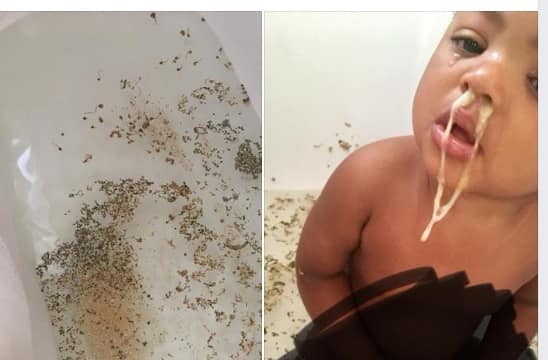 Brianna ha mostrato i risultati dopo un bagno decongestionante alle erbe somministrato al suo bambino, commentando: “Tutto il muco ha iniziato a uscire fuori!”