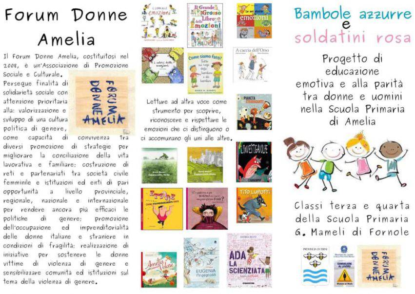 La scuola primaria Mameli di Fornole aveva dato il via a un’iniziativa, finanziata e sostenuta dall’ufficio di Parità della Provincia di Terni, per educare i propri alunni “all’emotività e alla parità tra uomini e donne”.