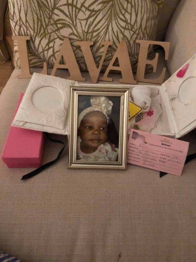 La sua piccola La’Vea è morta prematuramente a causa della Sindrome della Morte in culla. Straziata dalla perdita la sua mamma ha collocato le sue ceneri in un peluche su cui ha fatto ricamare la data di nascita e di morte della bimba.
