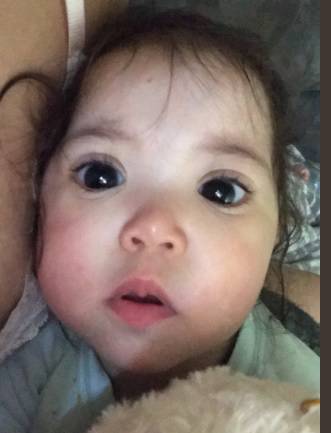 Una mamma condivide la situazione di sua figlia che ha una malattia rara che le rende gli occhi molto grandi.