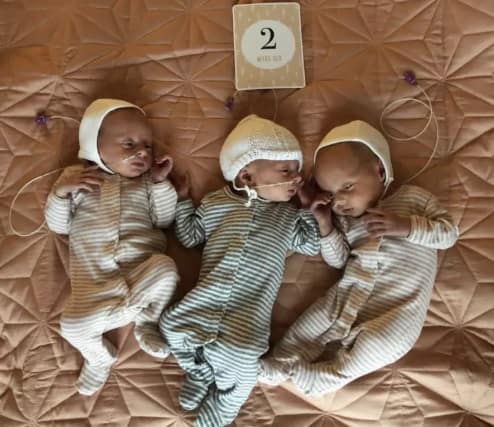 Questi sono Iben, Agnes e Filip, i suoi 3 gemelli.