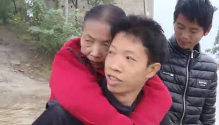 Il figlio porta la mamma sulle spalle da 15 anni, ora riceverà aiuto.